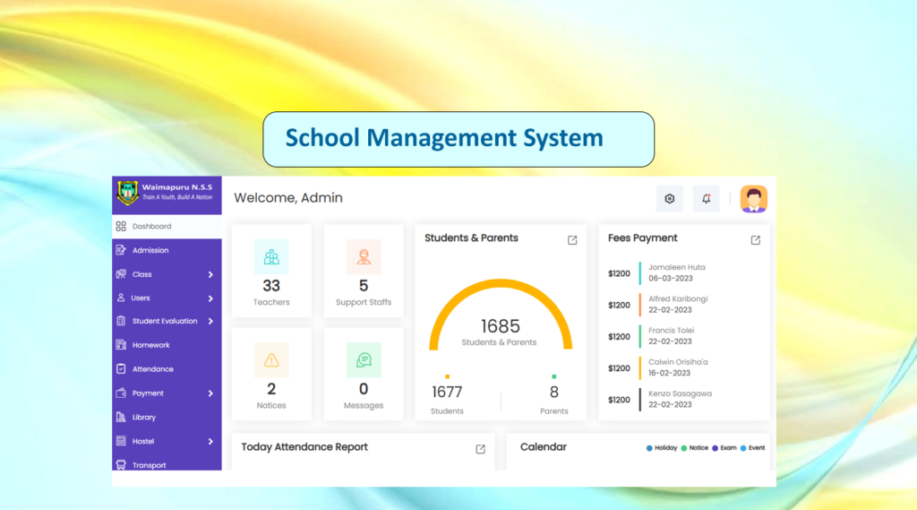 Home Page Our Services Implement advanced library and repository platforms to efficiently manage, store, and access digital knowledge Digital Library Systems Design and develop modern, responsive websites that enhance your online presence and user experience. Website Development Streamline school operations including student records, attendance, results, and administration through smart systems. School Management Deploy enterprise resource planning (ERP) solutions to integrate and manage core business processes in one unified system. ERP Systems